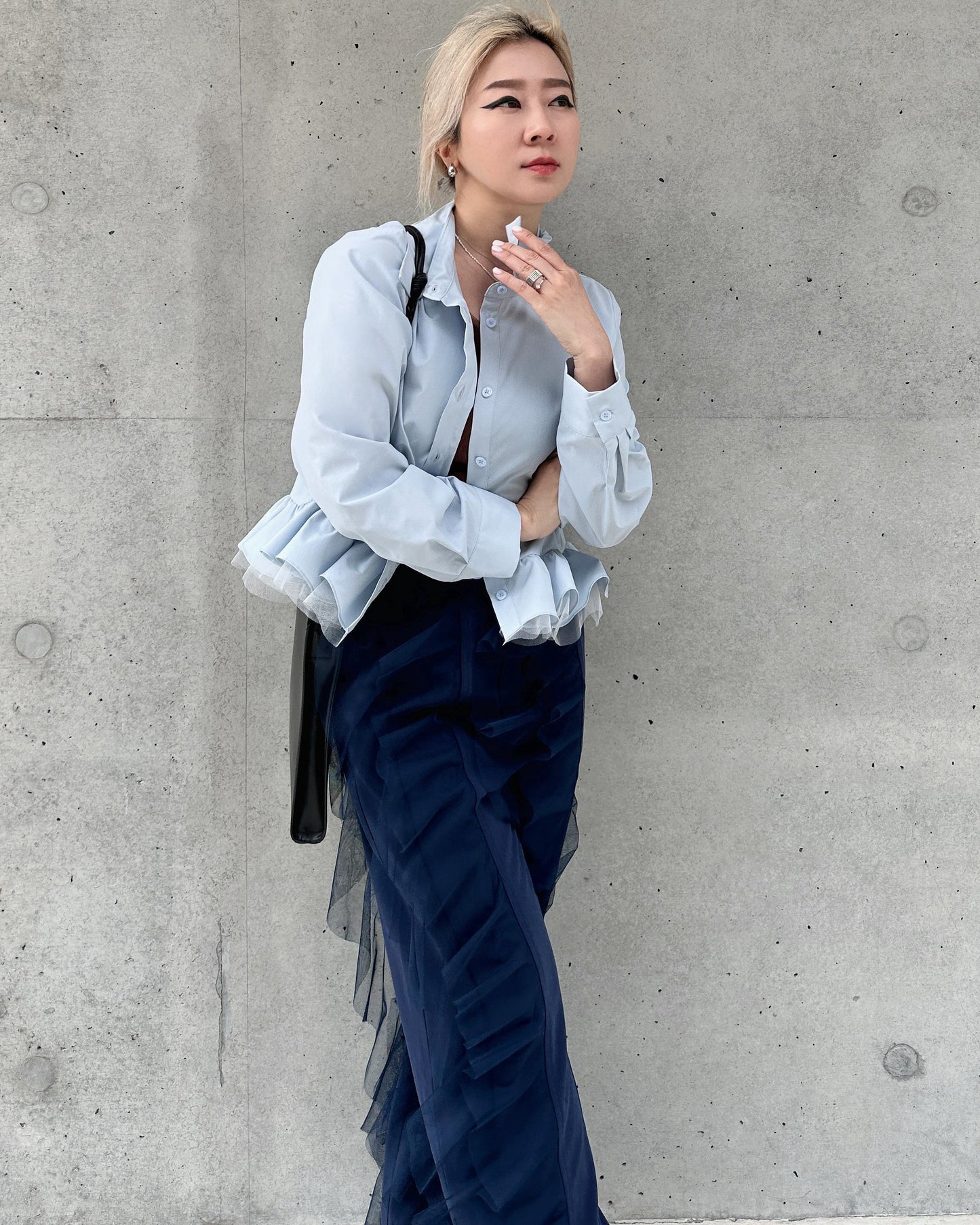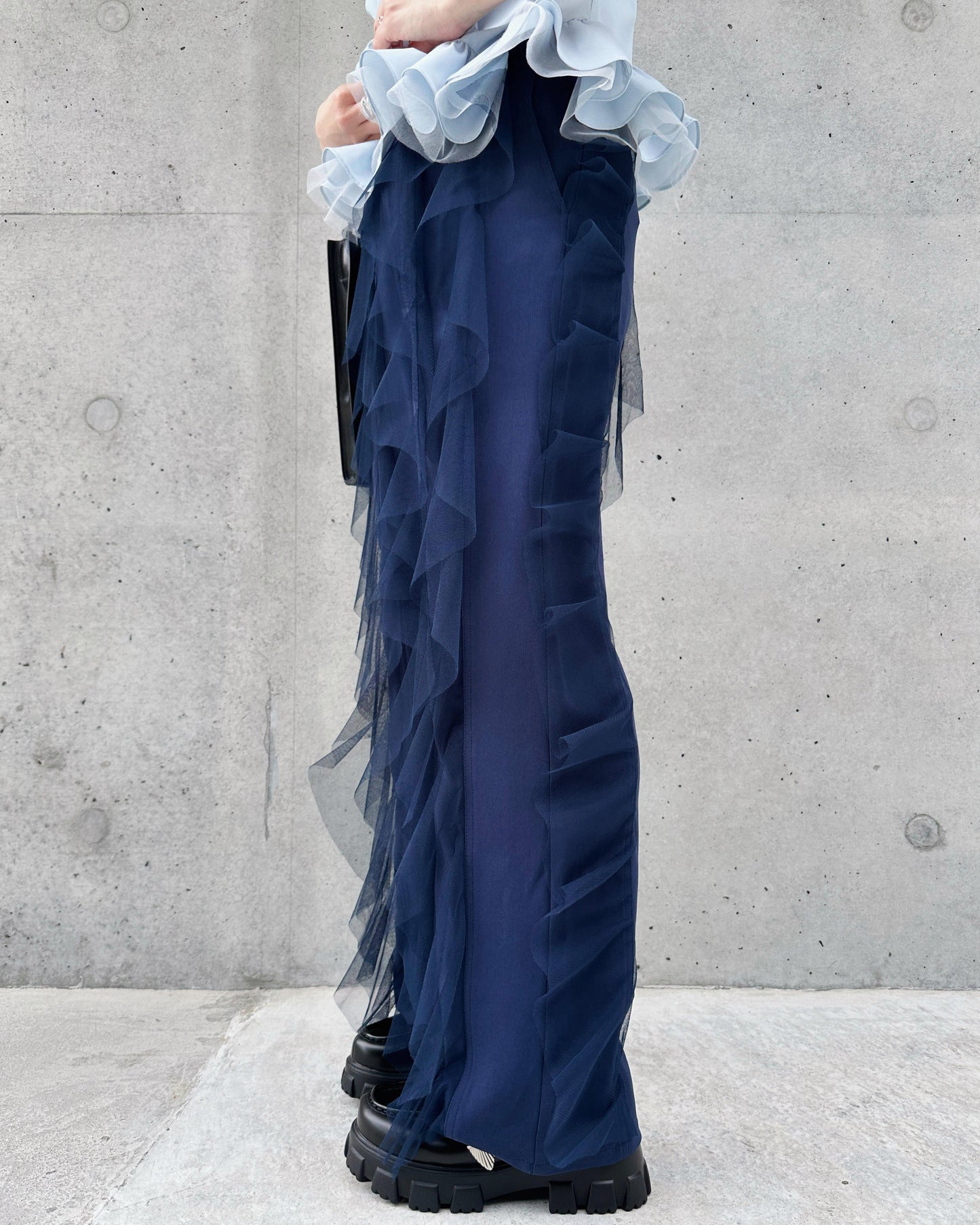 1. (Pre-order) aalis WISTA mesh ruffle detail skirt (Black)