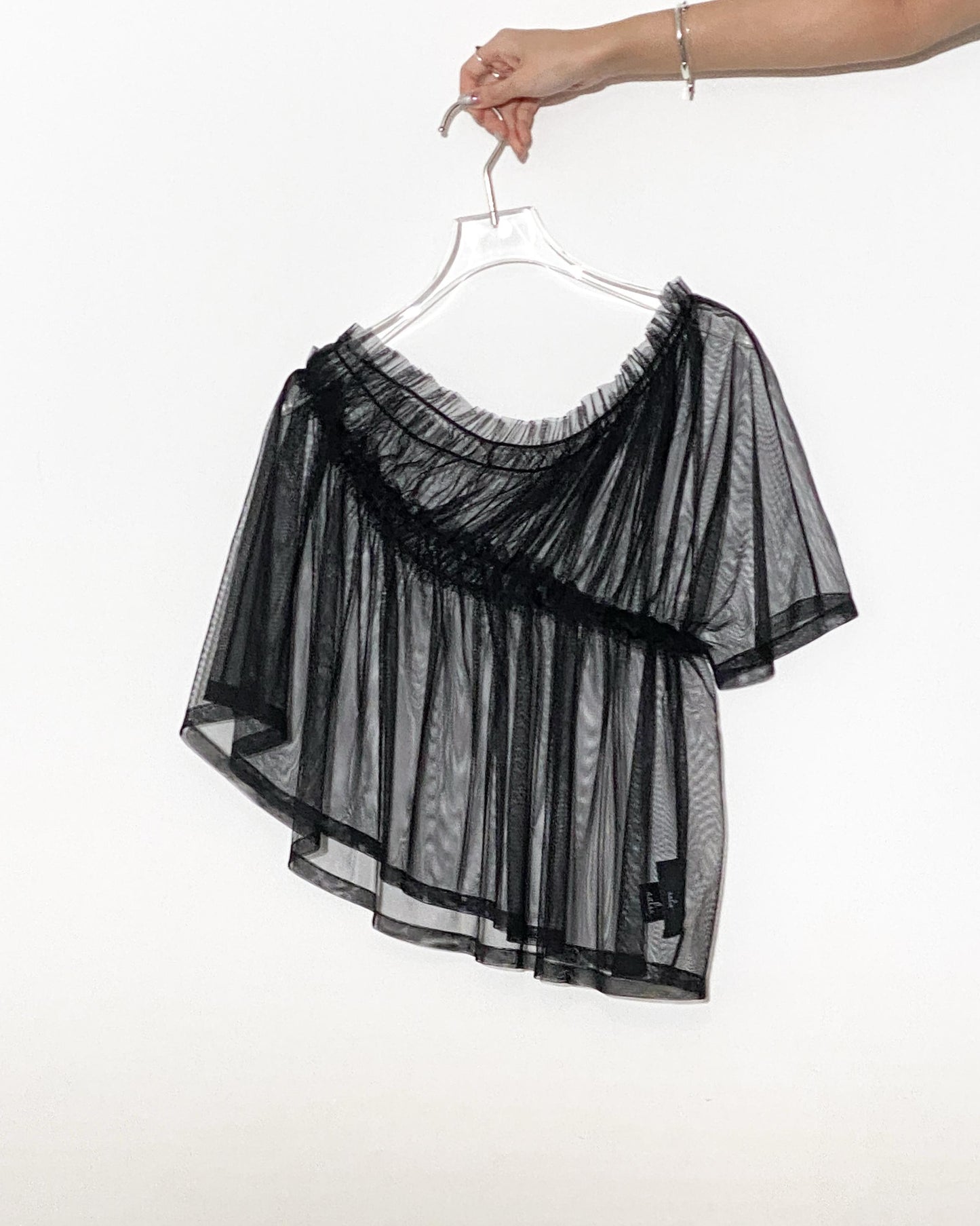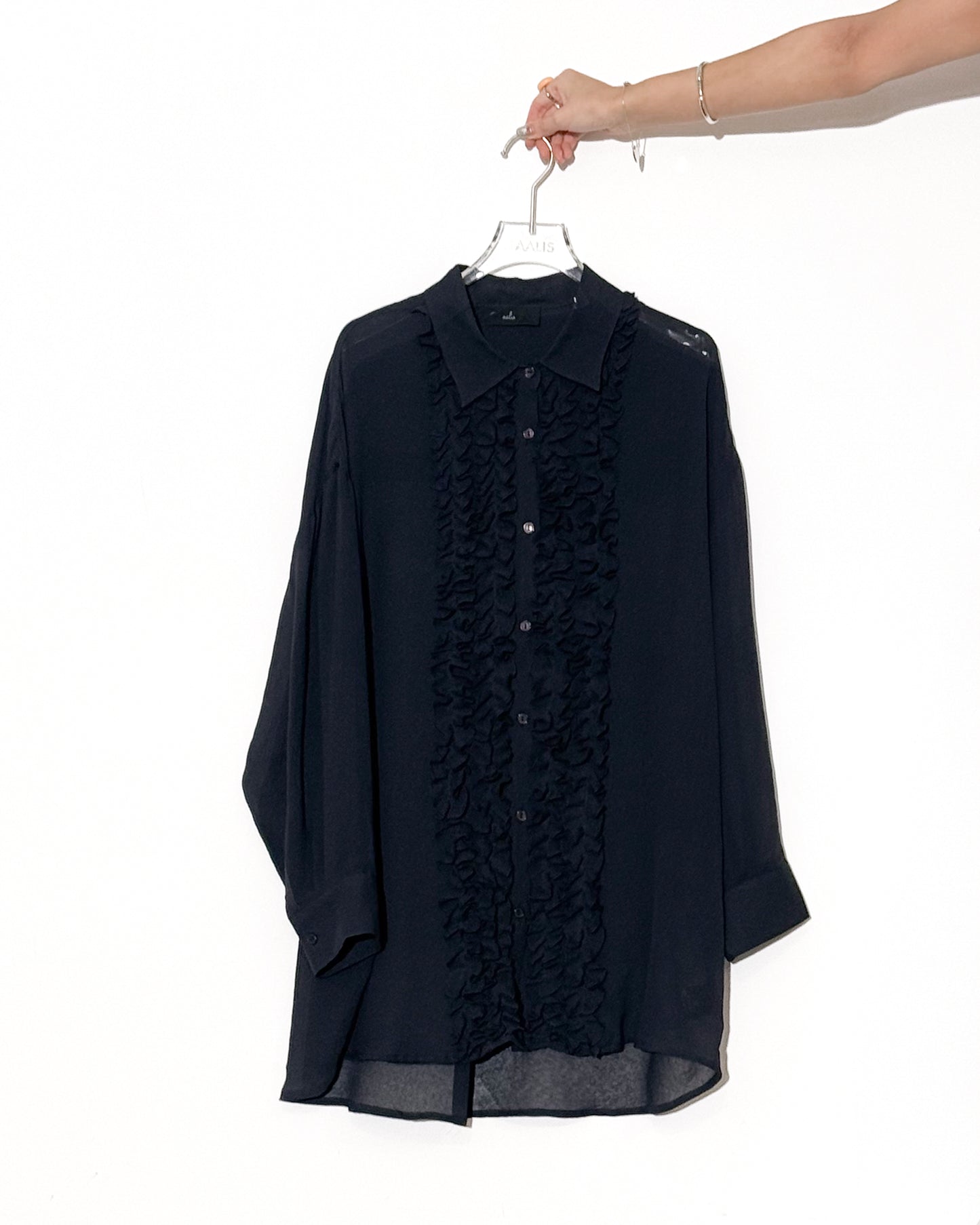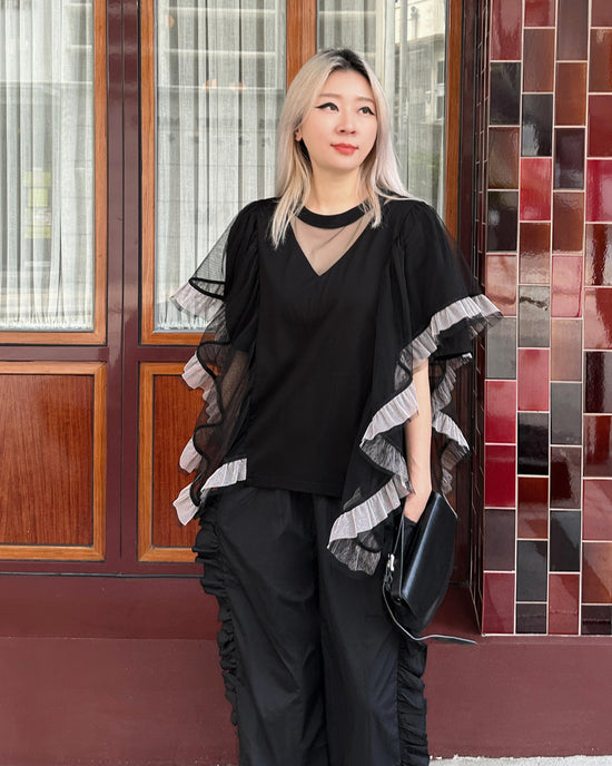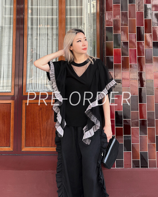 (Pre-order) aalis WISTA mesh ruffle detail skirt (Black)