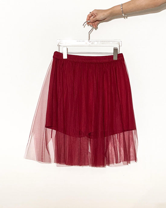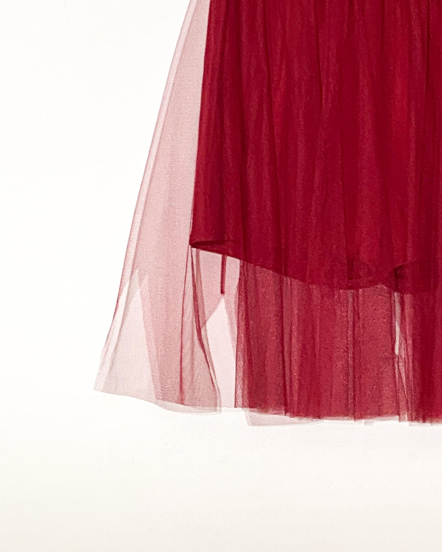 (Pre-order) aalis WISTA mesh ruffle detail skirt (Black Magenta)