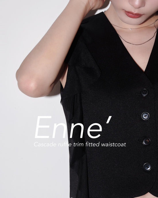 aalis SHINO side cascade ruffle V neck cardigan (Black)