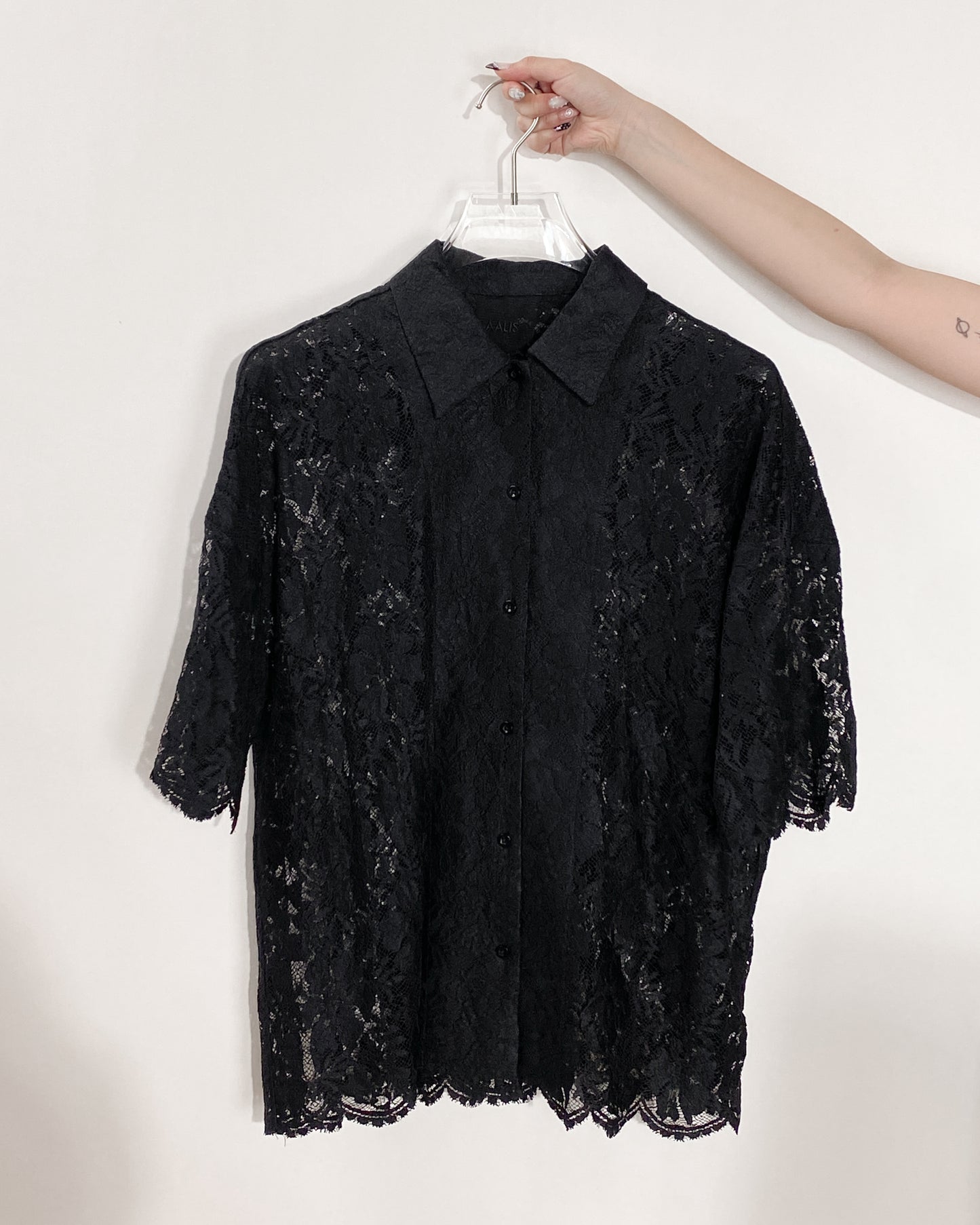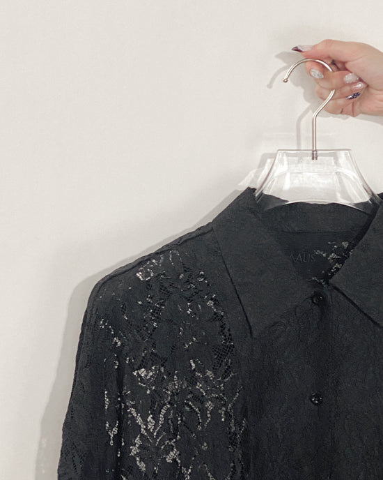 aalis REESE LACE cape panel on shoulder oversized shirt (Black)