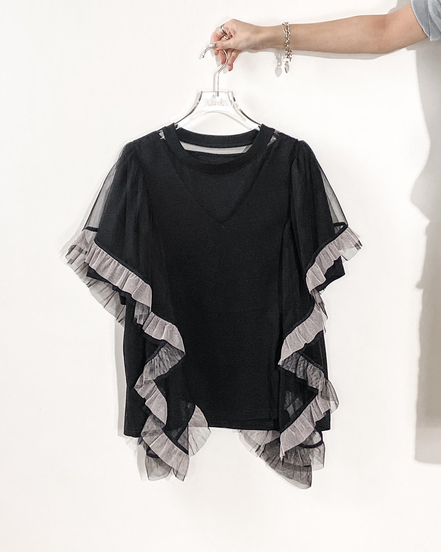 1. (Pre-order) aalis WISTA mesh ruffle detail skirt (Black)
