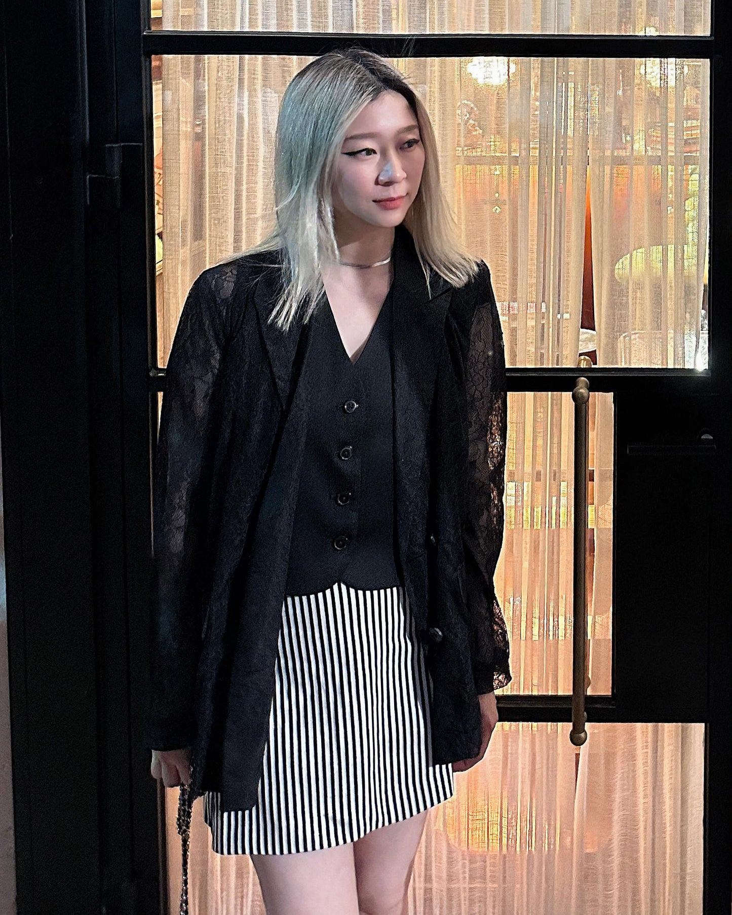 aalis ESENA mesh open back trench coat (Black)