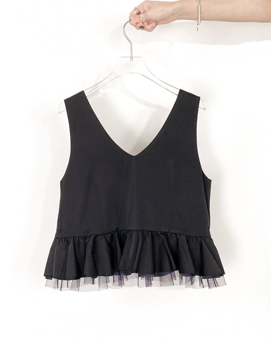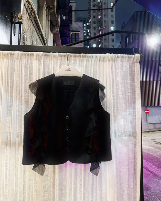 (Pre-order) aalis WISTA mesh ruffle detail skirt (Black)
