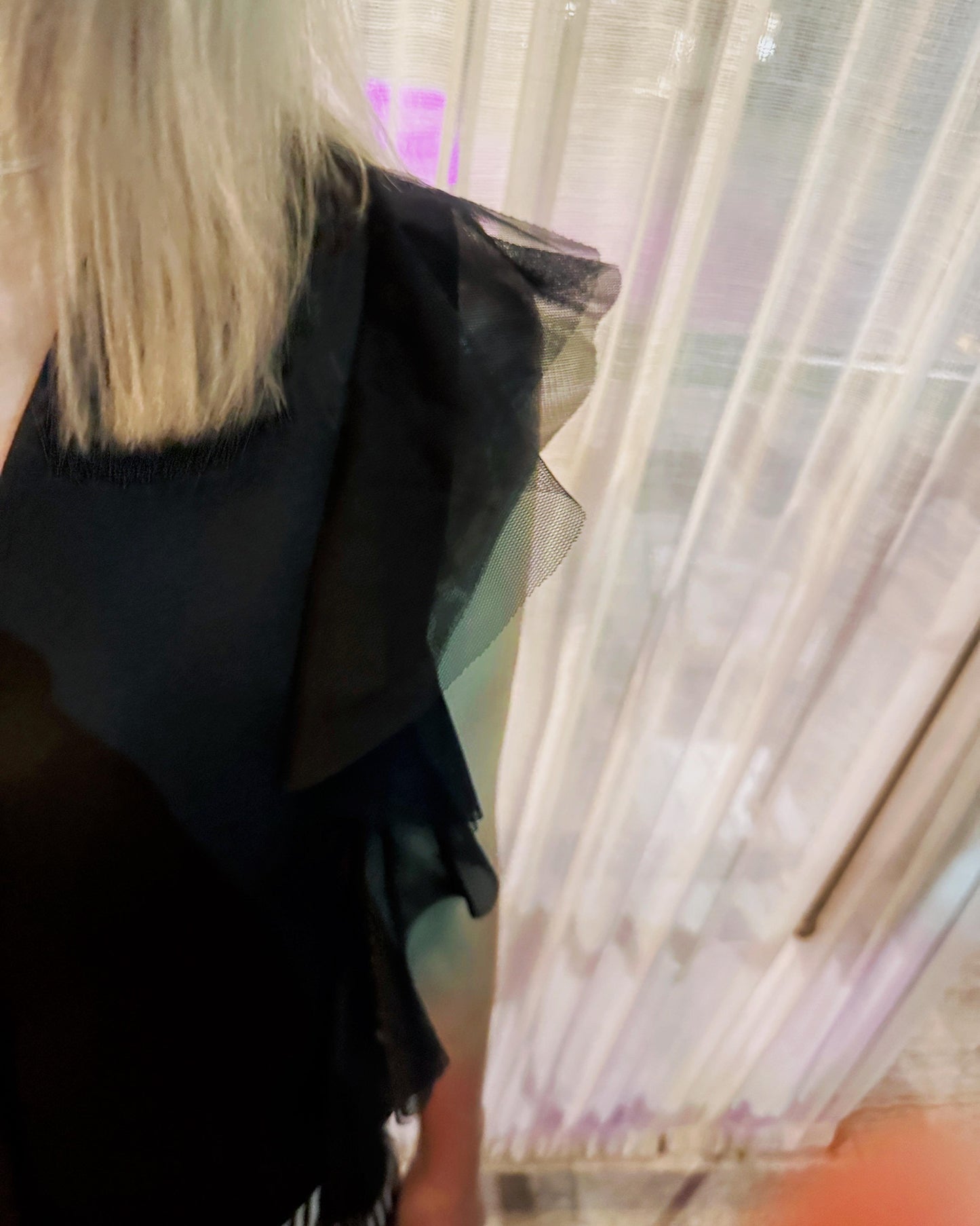 (Pre-order) aalis WISTA mesh ruffle detail skirt (Black Magenta)