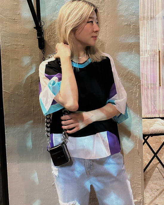 aalis CHARLEE velvet panel V neck cardigan (Black)