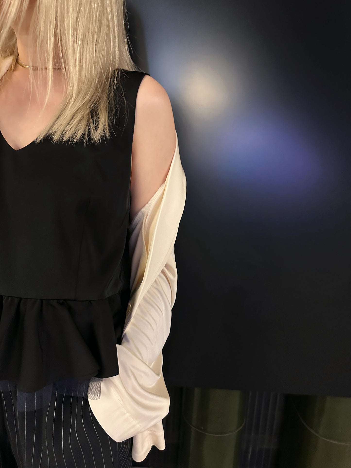 aalis CHARLEE velvet panel V neck cardigan (Ivory)