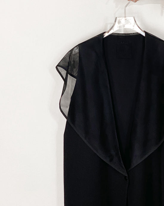 aalis CHARLEE velvet panel V neck cardigan (Black)