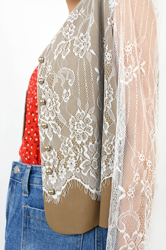 aalis GENNA 蕾丝边围巾开衫 (白色)