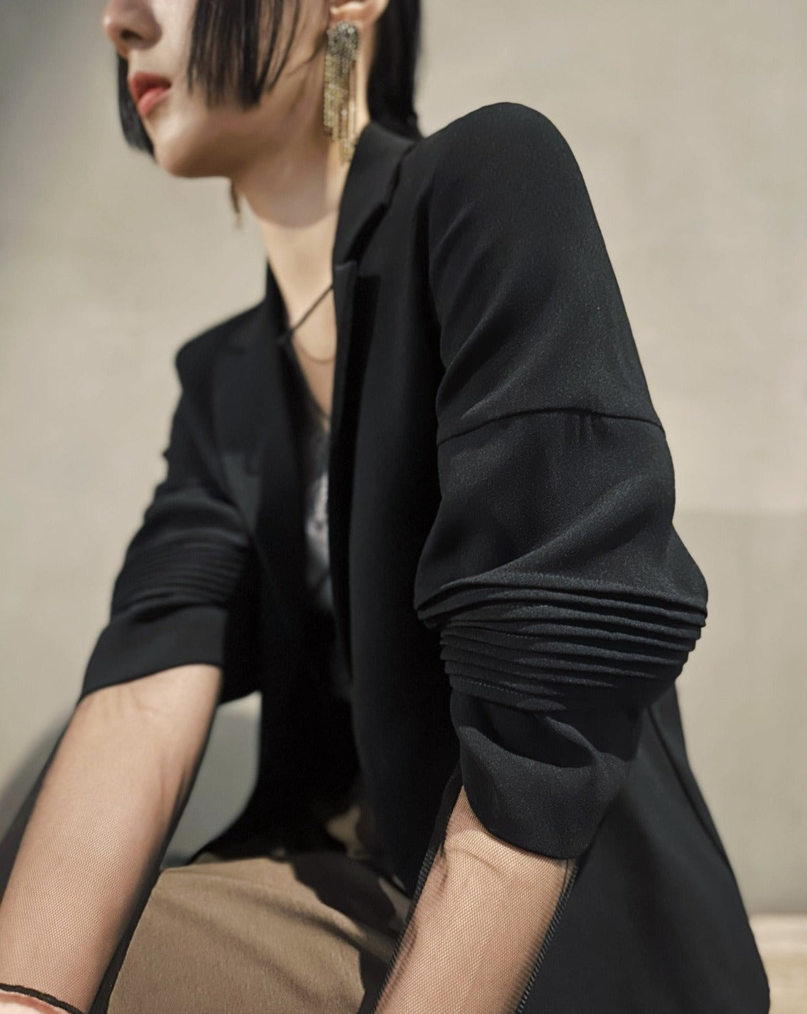 aalis RANIA 背面牛仔西装外套(黑色牛仔布)